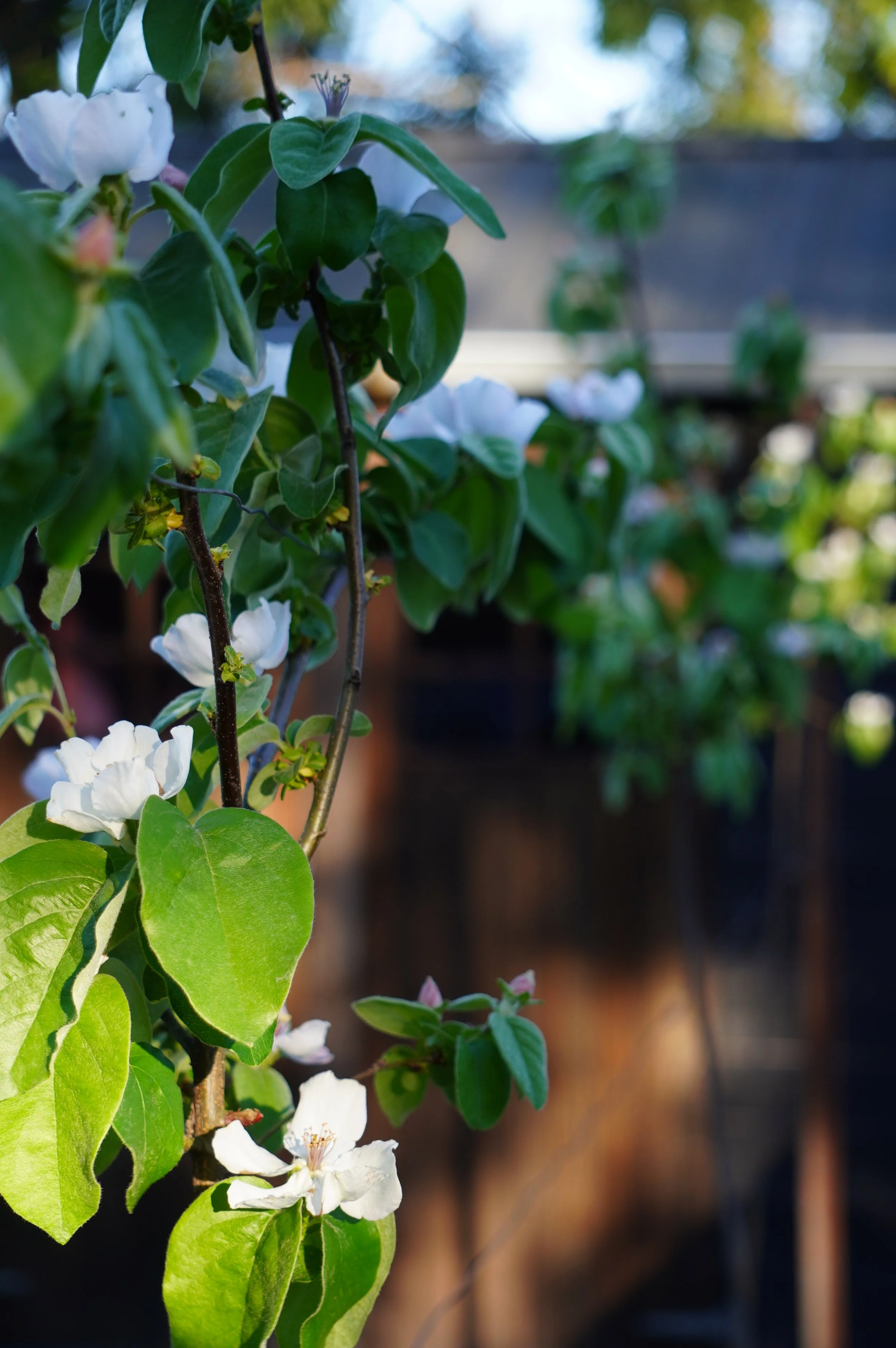 Espaliered quince trees.